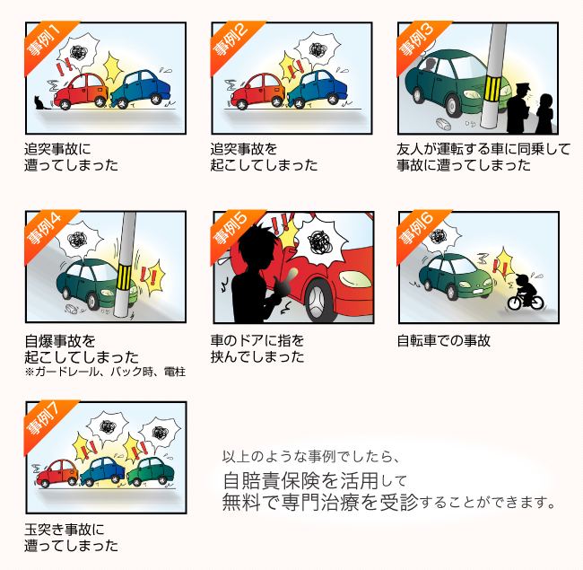 交通事故による症状・疾患にお悩みの方は、是非一度、ご相談下さい。